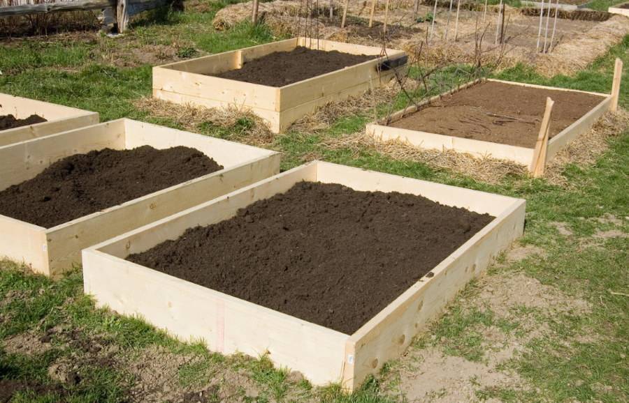 Высокие гряды с деревянным ограждением могут быть сделаны из досок, бруса и горбыля.