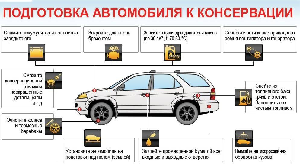 Если у вас нет возможности установить машину на подставки, то уменьшите её вес, а шины накачайте до верхнего допустимого уровня. Потом раз в 30 дней перемещайте машину, либо прокручивайте колёса для смены их положения.