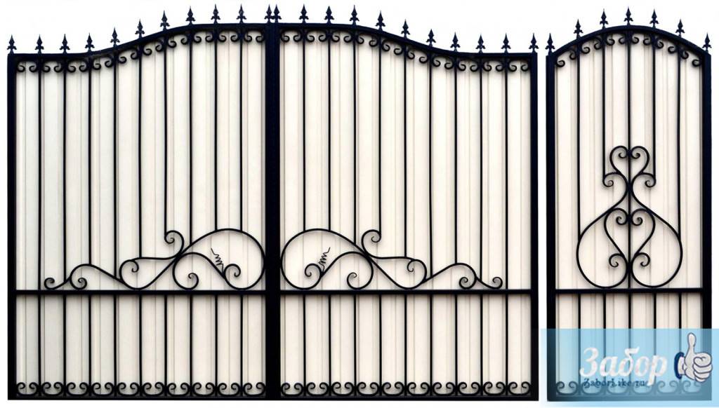 При изготовлении ворот или калитки используются элементы с нестандартной формой. При большом количестве секций их соединяют хомутами или закладками. Иногда крепление элементов происходит при помощи сварки. В интернете найдется множество фото с разными рисунками. Профессиональные мастера подскажут, как лучше сочетать орнамент.