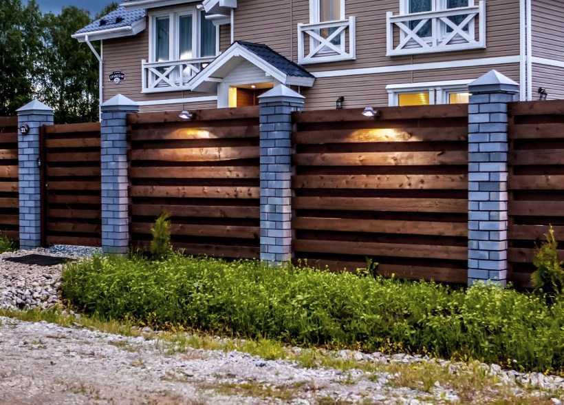 Виды деревянных заборов частных домов очень разнообразны и отлично вписываются в интерьер дворов.