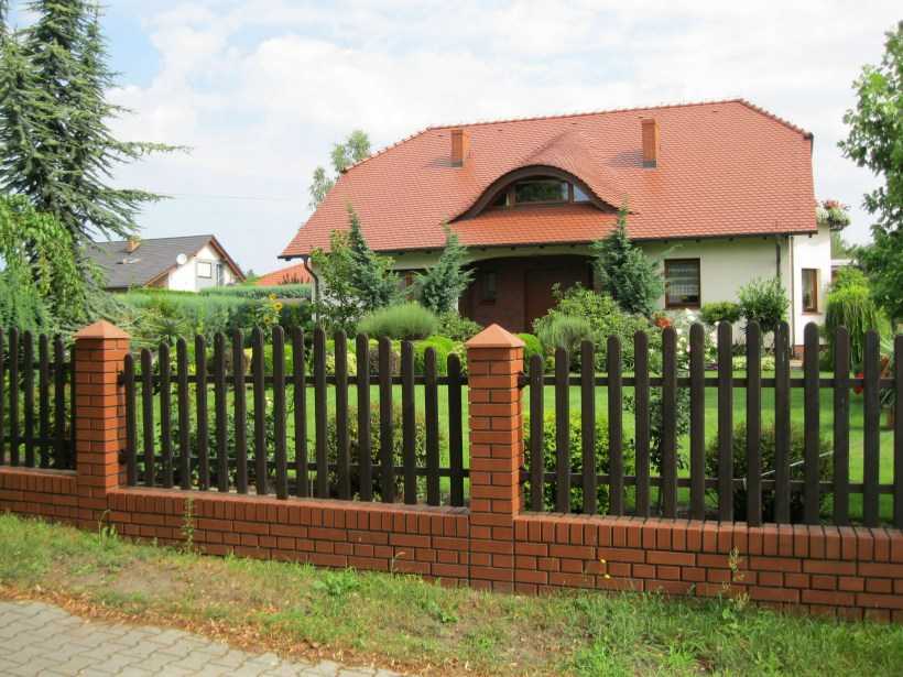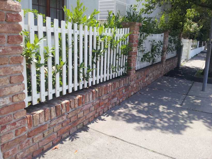 Классический тип, штакетник, может располагаться как по вертикали, так и по горизонтали. Его основание делается из кирпича либо каменного фундамента. Можно использовать и опорные столбы для монтажа ограждения. Но ограду стоит покрасить для защиты от влаги.