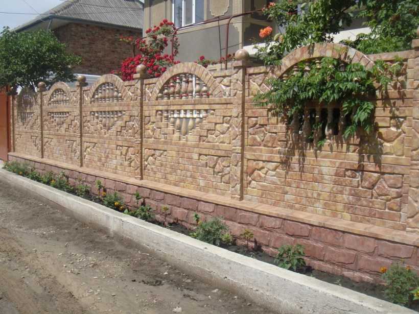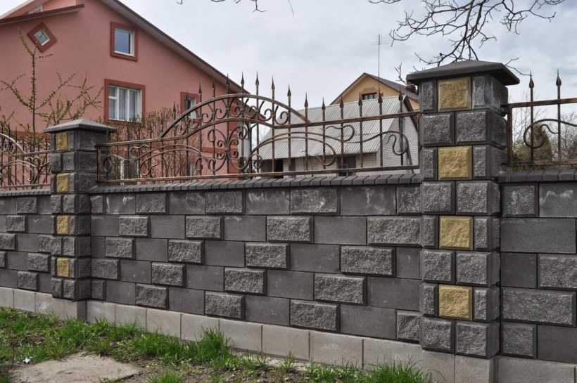 Вариаций железобетона великое множество — он может имитировать блочную кладку, натуральный камень, сланец и другие поверхности. Поэтому если дом, например, облицован камнем, не обязательно заказывать дорогостоящее ограждение из этого же материала: достаточно подобрать подходящую модель на заводе железобетонных конструкций.