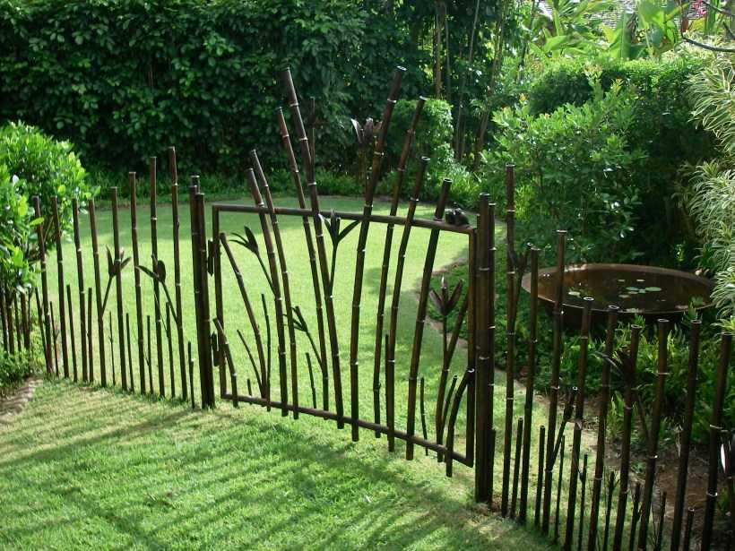 Изгородь из прутьев имеет привлекательный внешний облик. Конструкция будет состоять из нескольких прутьев. Они крепятся друг к другу при помощи сварки. Возведение такой ограды обойдется недорого.