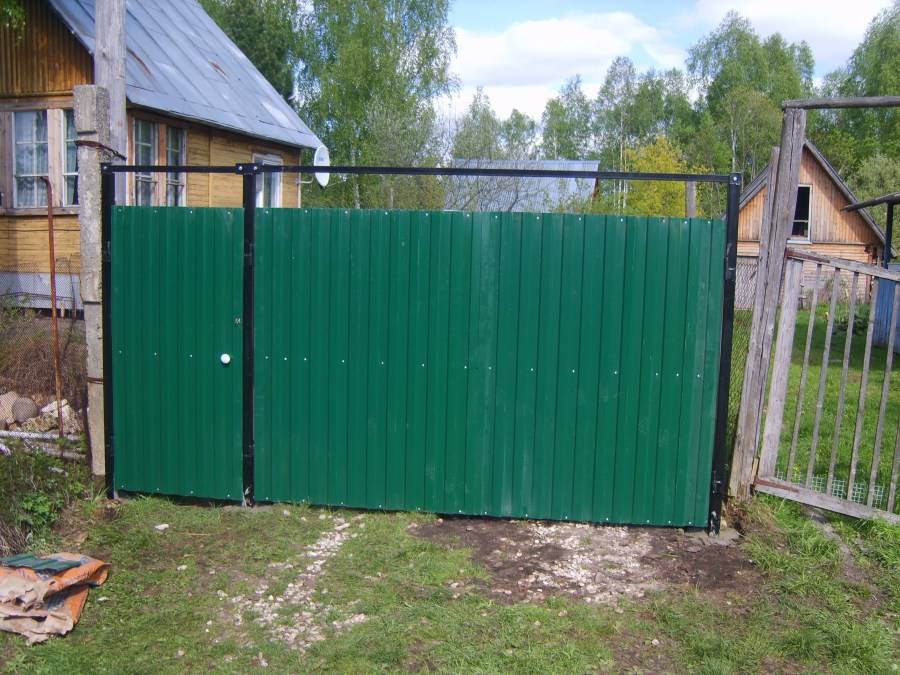 Ворота из профлиста, выполненные своими руками, можно установить на даче, на промышленной территории и на приусадебном участке. Это достаточно экономичная и долговечная разновидность ограждения. К тому же, широкая гамма выпускаемых расцветок позволяет выбрать наиболее подходящий вариант для любого участка.