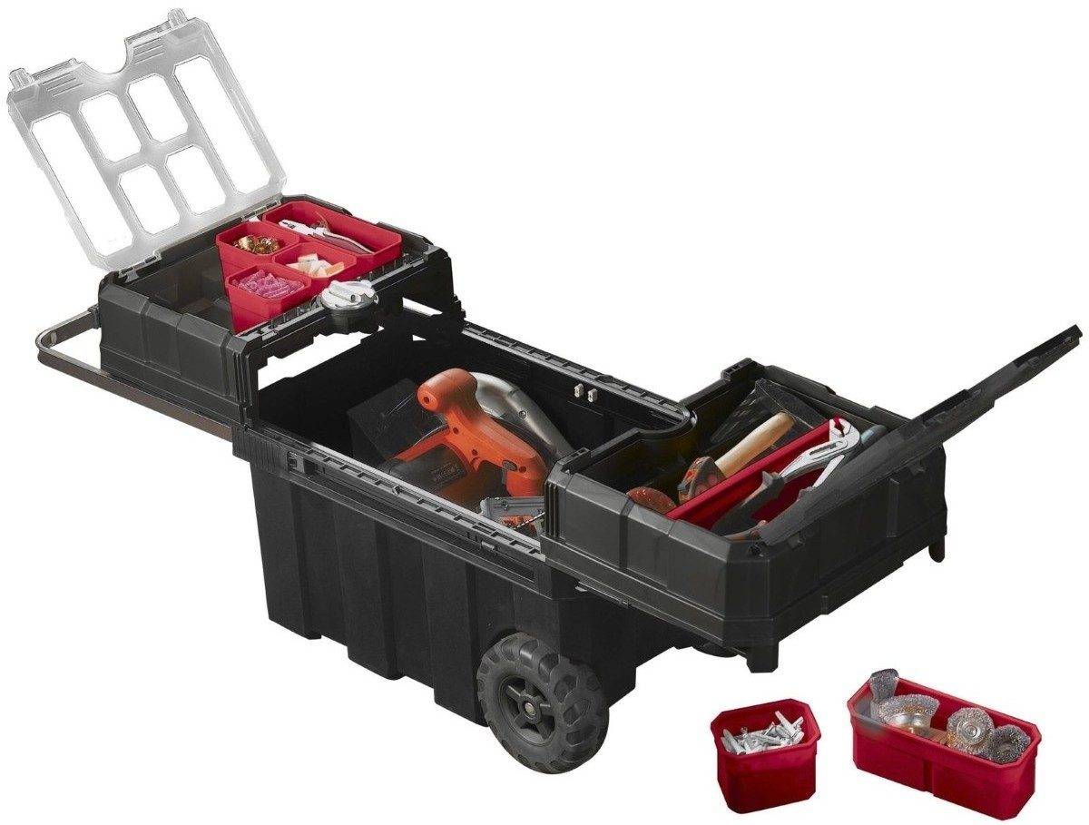 Кейс с высокими показателями вместимости, выполнен из пластмассы, оснащен колесами грузового типа. Внушительное число отделений с большой емкостью, присутствуют отсеки под расходные материалы. Также, подходит для крупногабаритной оснастки, вроде болгарок или дрелей. Присутствует модуль в форме карусели для размещения мелких инструментов, нижний отдел предоставляет пространство, чья емкость превышает 25 л. При перевозках проблем не возникает, но некоторые пользователи отмечают странное поведение рукояти при высокой загрузке чемодана. Размеры кейса равны 564 на 372 на 552 мм, возможна разборка на составляющие.