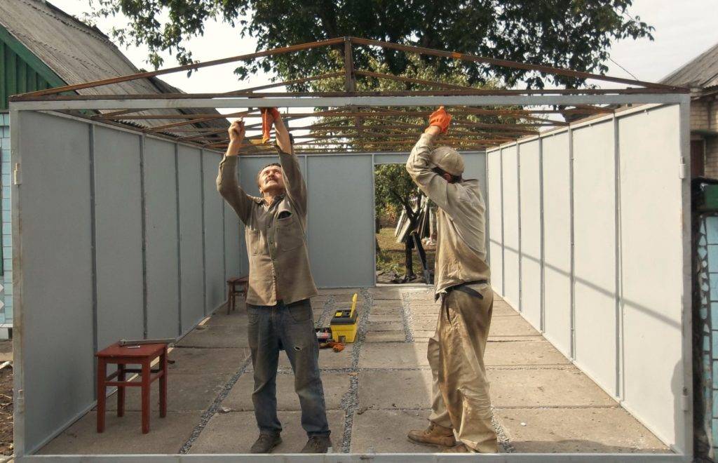 Чтобы облегчить себе задачу по сборке гаража, лучше сначала заготовить отдельные секции, и только потом собирать их воедино.