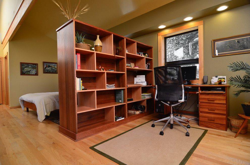 Несмотря на то, что все стеллажи имеют схожие функции, существует несколько видов. В первую очередь стоит отметить стационарные конструкции. Зачастую они массивные, очень прочные и надежные. Чаще всего именно их выбирают для зонирования помещения, так как такие стеллажи устойчивы и без демонтажа их невозможно переставить