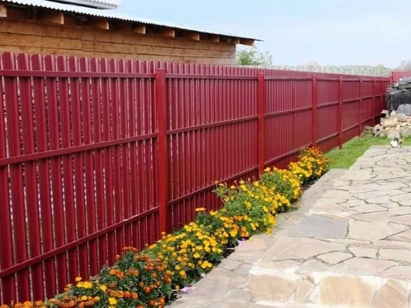 Яркий красный цвет – яркий, броский, запоминающийся. В философии фен-шуй он символизирует подъем и богатство. Но практика показывает, что красные заборы сильно раздражают соседей. Среди жильцов с подобными оградами часто вспыхивают ссоры. Сгладить этот момент помогает выбор более темных и тусклых оттенков (бордо, например).
