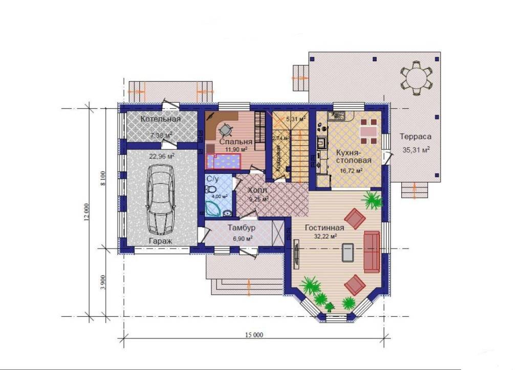 Строительство подобного здания позволяет обеспечить оптимальное соотношение удобства и занимаемой площади участка. В подобном доме вполне достаточно площади для обустройства жилых помещений и подсобок.