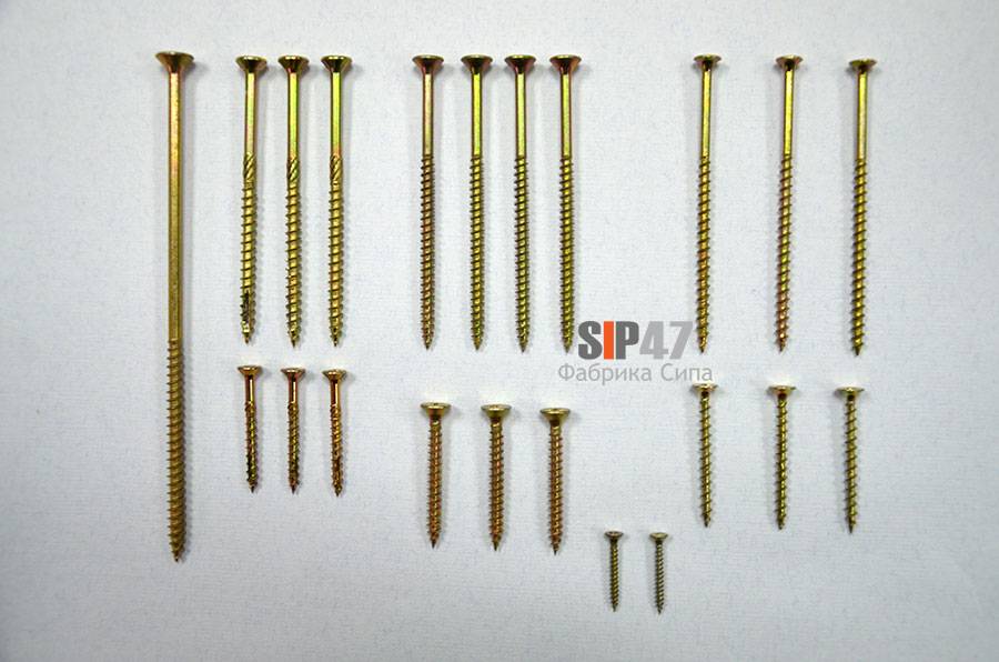 СИП-панель прикрепляется к вертикальному брусу и обвязке саморезами диаметром 3,5 мм и длиною 40-45 мм с шагом в 15 см с обеих сторон.