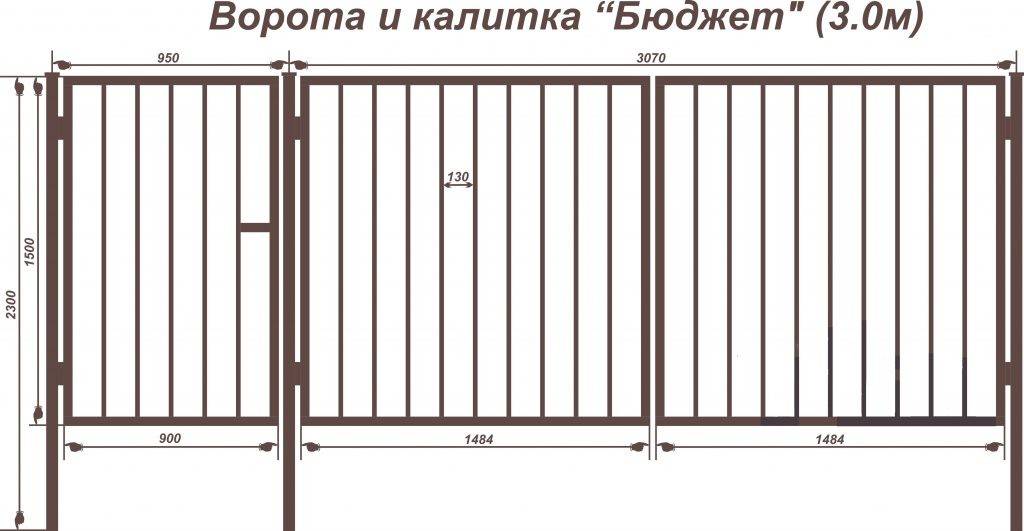 Первое, что следует сделать, приступив к работе – это чертеж будущих ворот. Он позволит наглядно представить особенности конструкции, определиться с размерами материалов и их количеством. Для создания чертежа ворот необходимо измерить рулеткой предполагаемое место установки. Предварительно следует наметить предполагаемое место установки столбов ворот и калитки. Расстояние между столбами требуется измерить как можно точнее: неточные измерения могут привести к необходимости переделывать уже сваренные ворота.