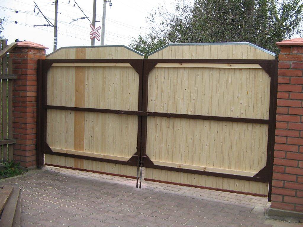 Отбирать материал следует тщательно. Недопустимо наличие сучков, а также синевы на поверхности дерева. Опорные столбы можно сделать из металлических труб или деревянных брусьев. Независимо от выбранного материала сечение опор должно быть не менее 15 сантиметров. Для изготовления створок необходимо следующее: