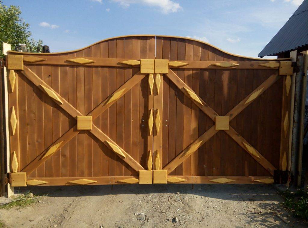 Строить деревянные ворота своими руками, в которых из древесины вырезается не только обшивка, но и элементы каркаса, несколько сложнее, чем комбинированные. В этой работе главное – обеспечить максимальную точность измерения деталей. Недочеты в их обработке сразу бросаются в глаза, и устранить их весьма затруднительно.