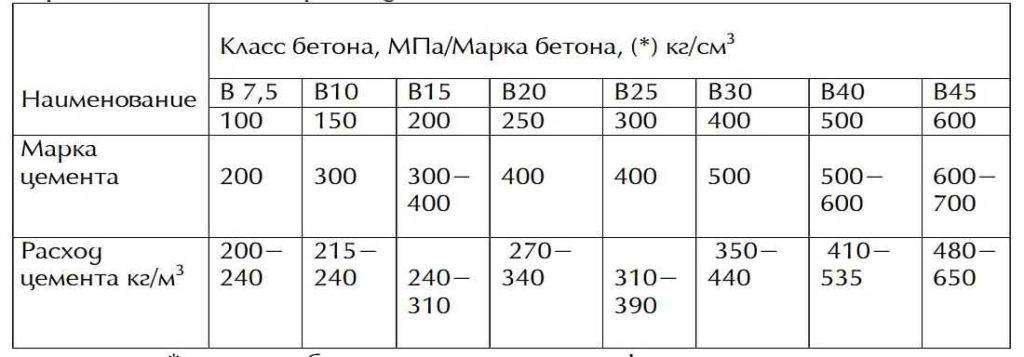 Для заливки готовится раствор бетона М200, состоящий из одной части цемента, трёх частей песка и пяти частей щебня.