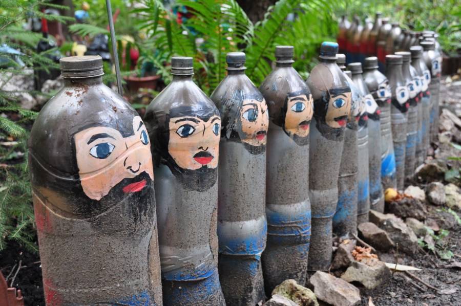 - При ограниченных финансах допускается использовать для ограды подручные материалы (пластиковые или стеклянные бутылки, автомобильные покрышки).