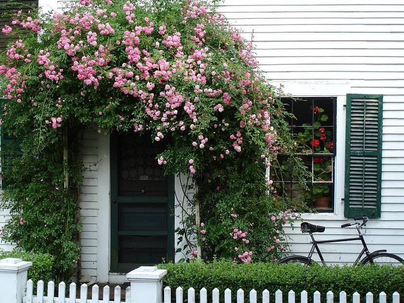 Романтический палисадник. Сооружаются живописные арки, обрамленные нежными лианами с яркими цветами. Дорожки имеют петляющую форму, их часто засыпают гравием. Клумбы засаживают пионами, астрами, розами, георгинами.