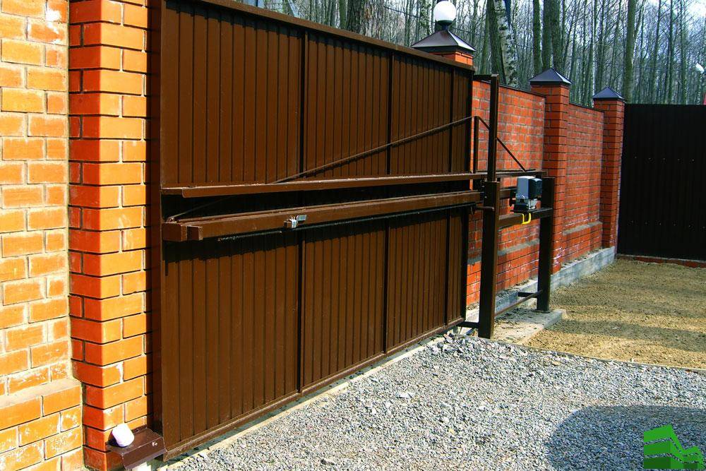 Движение ворот осуществляется очень просто благодаря хорошо проработанной конструкции, а также пониженному трению. Из минусов можно отметить сложную установку и необходимость наличия большего участка забора, чем размер проема.