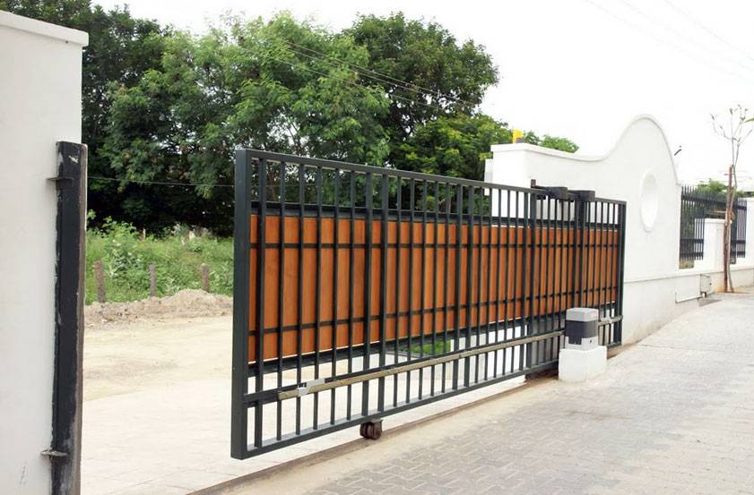 Разберемся, что же собой представляют откатные ворота, какими они бывают и в чем их различия и преимущества. Ворота этого типа состоят из установленного на рельсы из металлического профиля полотна, которое плавно движется по направляющим посредством специальных роликов. Механизм позволяет экономить свободное пространство, автоматизирован и работает благодаря электрическому двигателю мощностью 40-100 Вт. По типу крепления выделяют откатные по рельсу, консольные и навесные ворота. Рассмотрим каждую из конструкций подробнее.