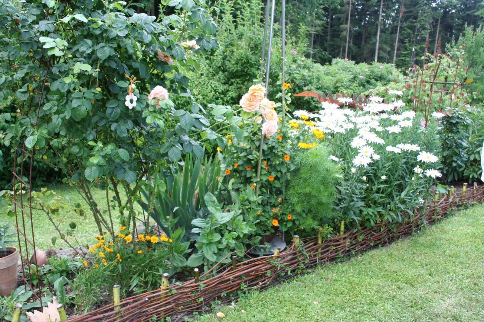 Декоративные клумбы и невысокие плетёные заборы на даче прекрасно гармонируют с цветами, придавая участку неповторимый шарм. Такая красота легко создаётся своими руками и не требуют больших финансовых затрат.