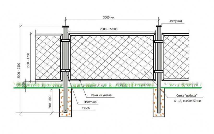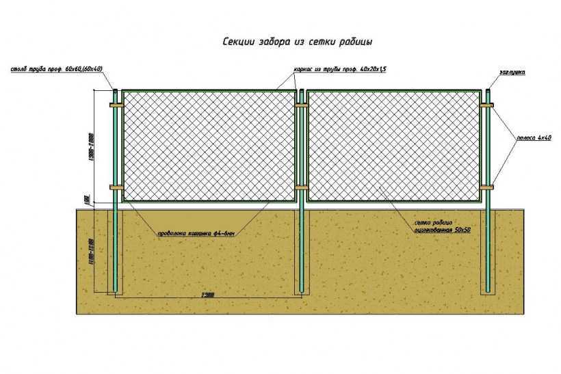 Существуют две формы поставки рабицы — в виде рулона и в виде нарезанных в размер листов. Листы применяют для создания секционных ограждений. Для изготовления секции потребуется изготовить рамку из уголка, для этого используют равнополочный уголок с размером полки 20-25 мм. Внутрь этой рамки вваривают лист сетки. Готовую секцию подвергают антикоррозийной обработке. И устанавливают в проем между опорами. Для этого допустимо использовать сварку или механические способы, например, болтовые.