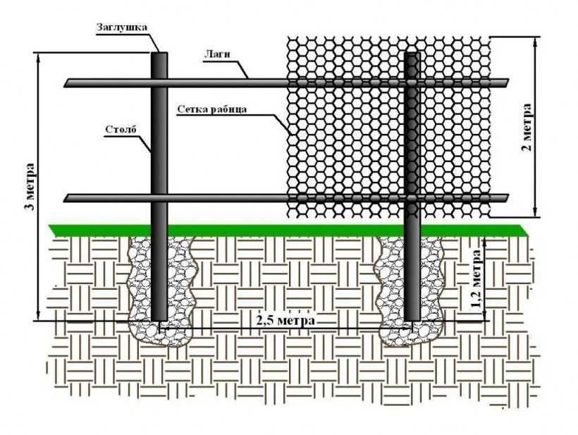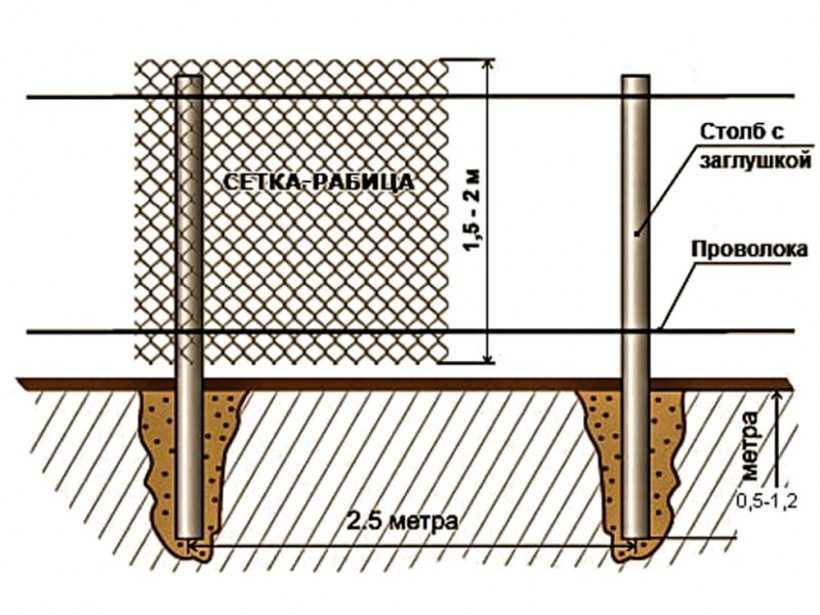 Для монтажа сетки на заранее подготовленное место устанавливают опоры. Кстати, из какого материала они будут выполнены не играет особой роли. Главное не забыть, обработать нанести слой гидроизоляционного материала концы деревянных опор.