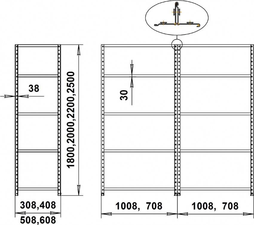 Стеллажи получаются громоздкие и тяжелые, но надежные.. Толстый металл нужно часто сверлить для многочисленных креплений, что тоже может вызвать определенные неудобства и трату времени