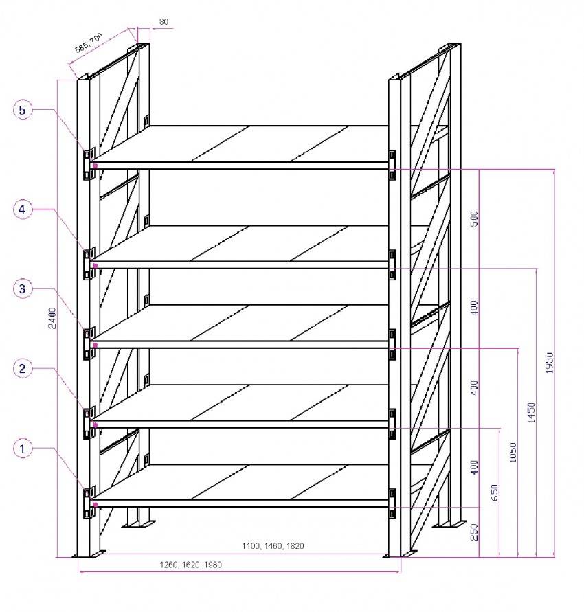Все важные данные фиксируются только на бумаге, тогда стеллаж получится правильным и никаких неожиданных несовпадений в процессе монтажа встречаться не будет. Ну а дальше можно уже приступать к созданию металлического каркаса.