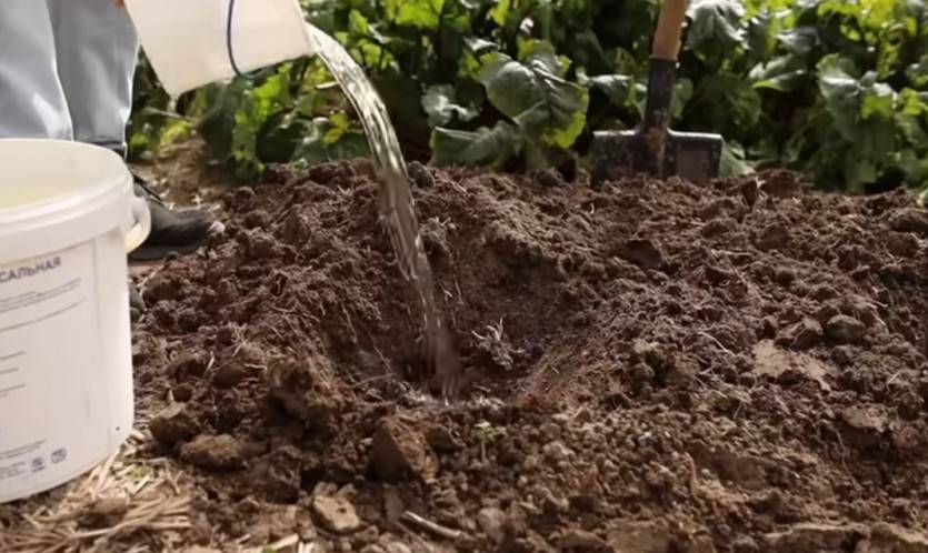Можно применять и комплексные подкормки, например, нитроаммофоску. Ее требуется вносить 20-25 г на 1 м2. После подкормки грунт нужно обильно полить теплой водой и разровнять участок граблями.