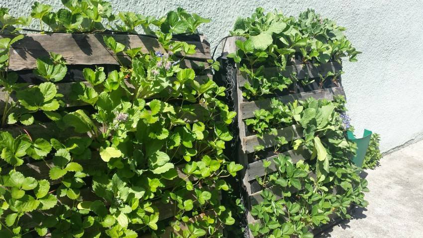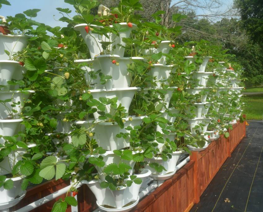 Фото вертикальных грядок для клубники