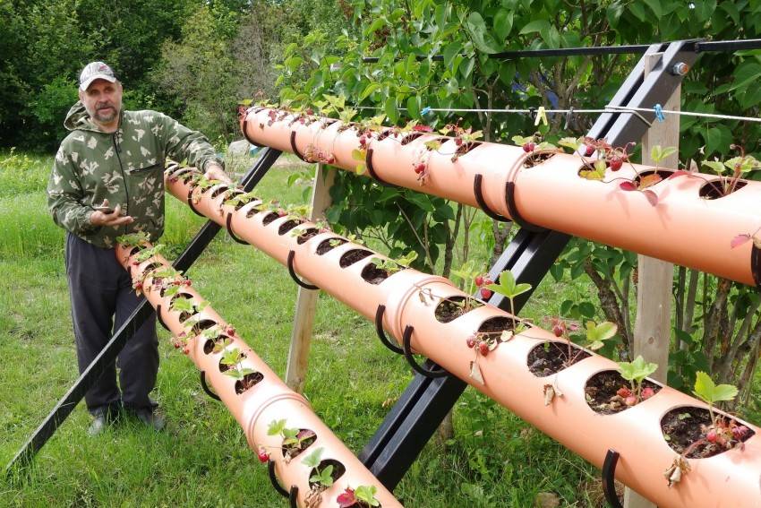 - Клубника в трубах