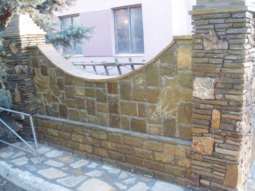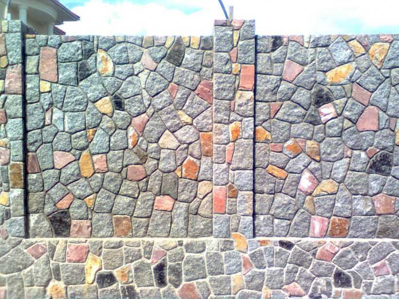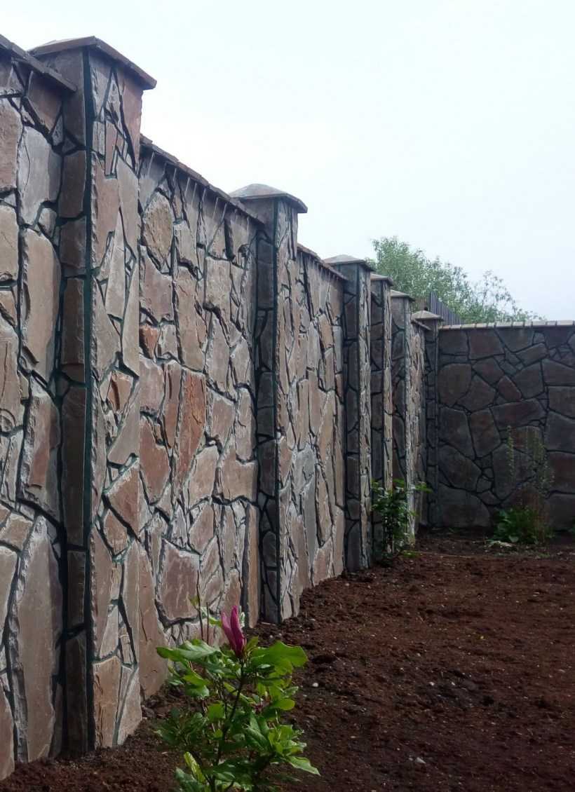 Узор ограды сложенной из искусственного камня И это происходит благодаря его уникальным характеристикам и многим положительным сторонам: