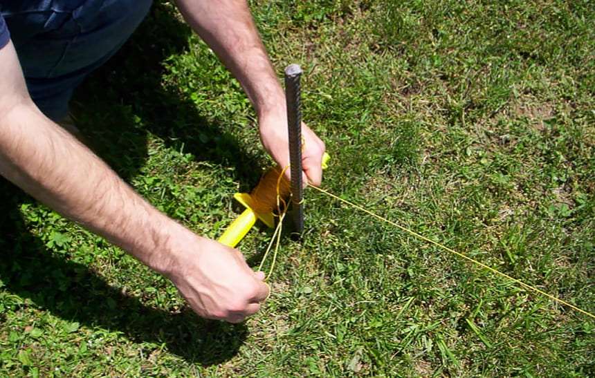- Далее по периметру нужно протянуть веревку. Она должна быть натянутой.