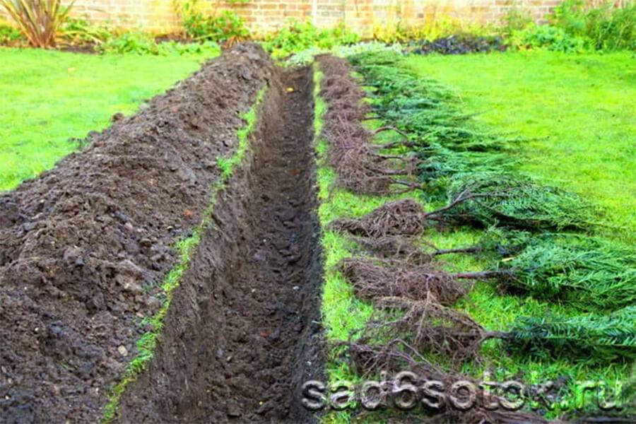 - по линии размещения живой изгороди делается небольшая посадочная траншея;