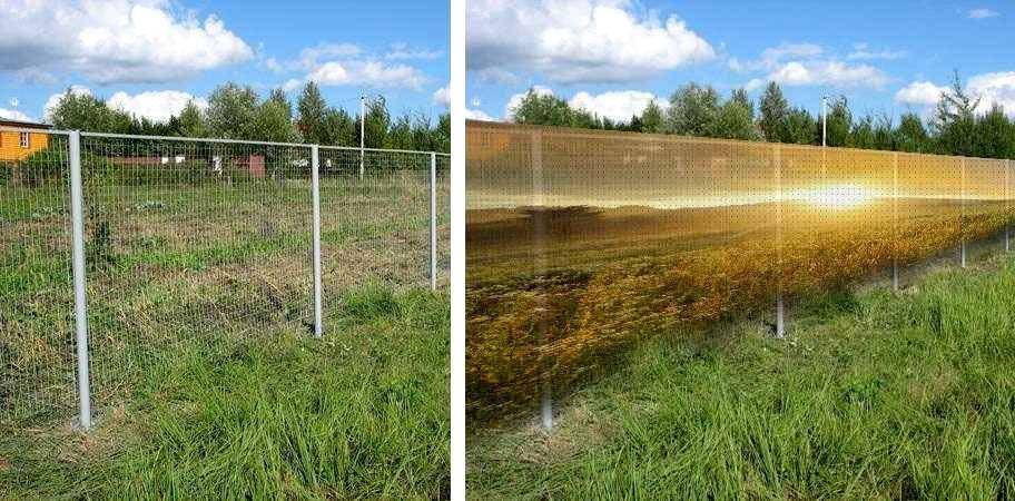 Итак, мы описали достаточно легкий и недорогой способ, позволяющий придать сетчатому забору более привлекательный вид и сделать его менее проницаемым для любопытных взглядов.