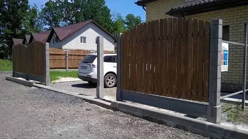 А так выглядит современный еврозабор с бетонными столбамиИсточник durvisriga.lv