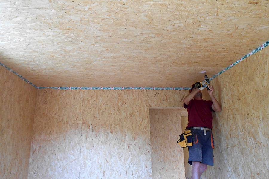 Обшивка гаража ОСБ плитами потолка и стен