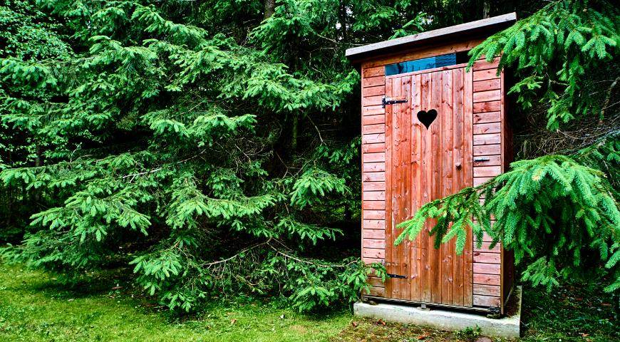 Когда туалет обустроен на улице, его располагают на расстоянии 12 метров от оградительного сооружения.