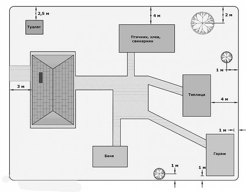 - оставляют 3 м до стен основного дома по тем же противопожарным соображениям, просто такое расстояние дает возможность проехать спецтехнике.