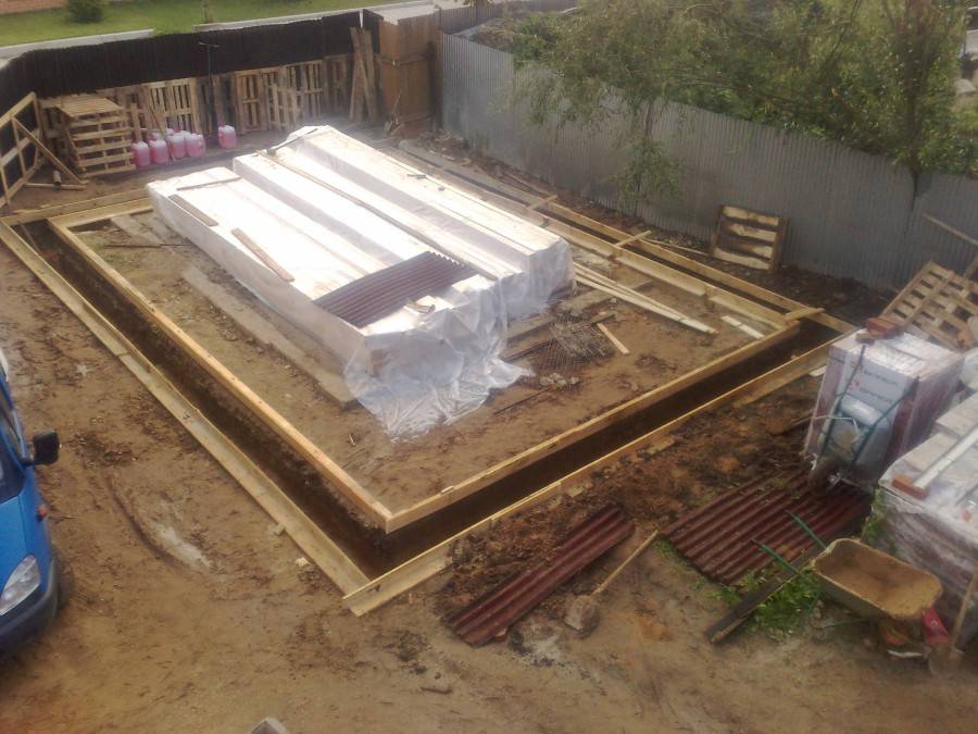 6. Монтаж опалубки – деревянных щитов или несъемной (пенополистирол, ППСБ, арболит), к преимуществам последней относят дополнительную функцию утепления.