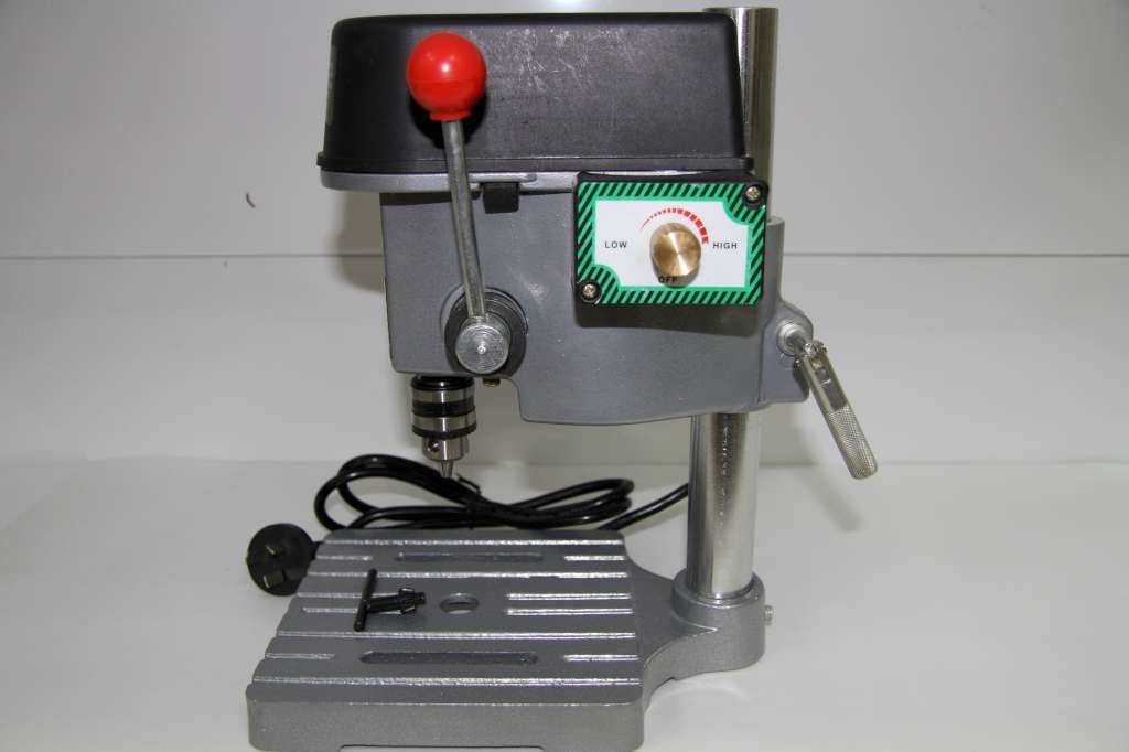 Для таких нужд подойдет настольный станок. Нужно учитывать, что толщина материала, в котором планируется проделывать отверстия, не должна превышать 16 мм. Зато он имеет маленький размер, потребляет мало энергии и практически не шумит.
