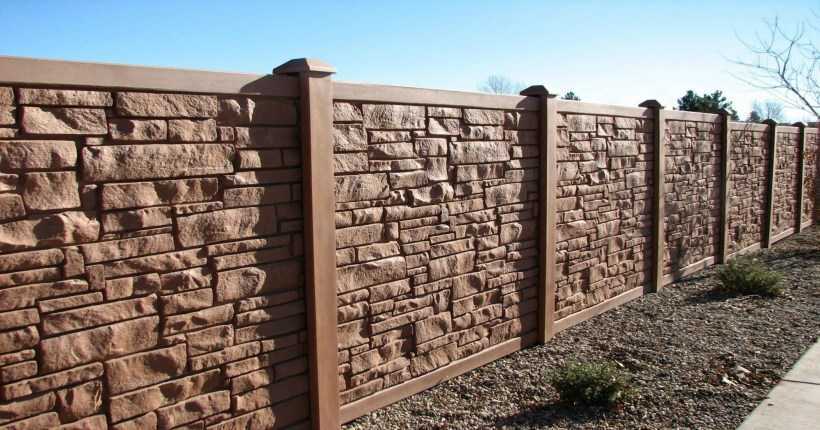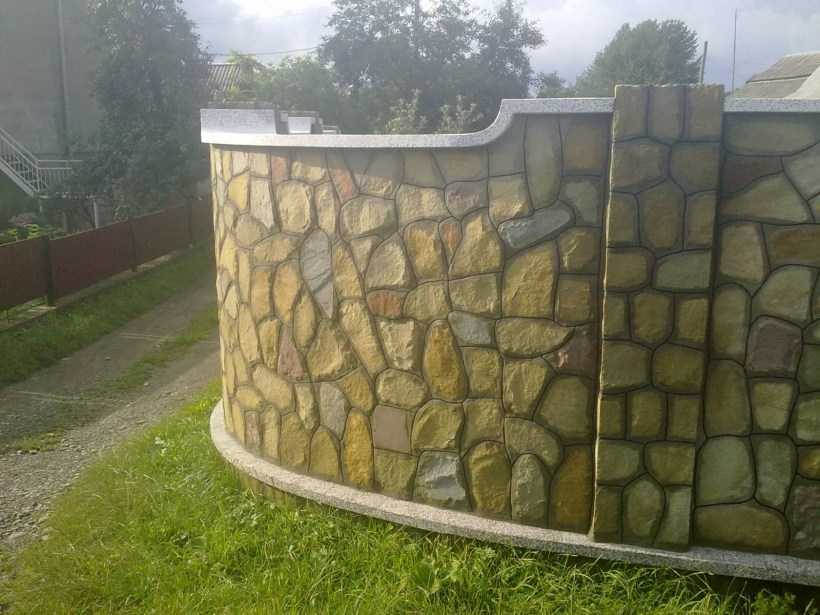 Теперь более детально рассмотрим внешний вид каждого изделия. Декоративные виды заборов представляют собой две части, каждая из которых имеет форму буквы Г. Когда эти два объекта соединяются между собой, то получается один полный камень. Довольно часто, чтобы украсить и разнообразить столбики для забора, используют данный камень и арматуру внутри. Далее, все это изделие заливают бетоном – и столбик готов. В готовом виде он имеет привлекательный внешний вид, а также отличный уровень плотности. Внешний вид такого столбика достаточно универсален, что позволяет владельцу применять различные виды заборов с использованием другого материала. Очень часто материалом такого вида могут быть доски из дерева или металлопрофиль.