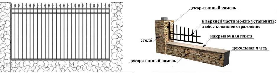 Прежде чем начинать возведение комбинированного забора, следует подготовить материалы. Натуральный камень для столбов забора отбирается более ровной формы, крупного и среднего калибра. С лицевой стороны бутового камня скалываются выступающие части.