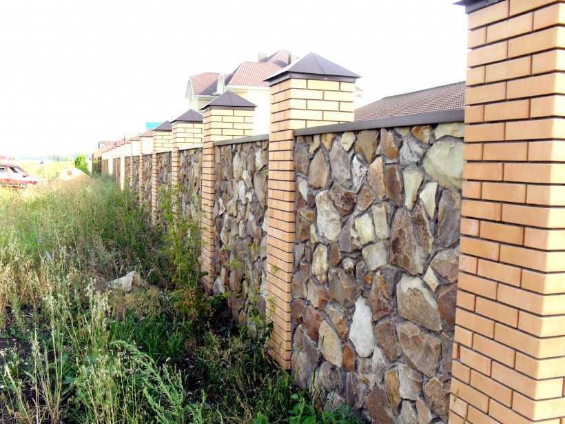 Выбор материала в этом случае является главным фактором, определяющим цену сооружения. Возводя каменный забор вокруг дома можно использовать: