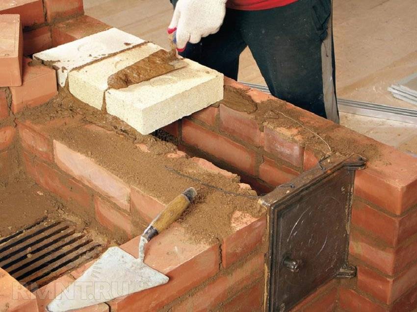 - Начиная с третьего ряда формируют отверстие для топки и устанавливают колосник.