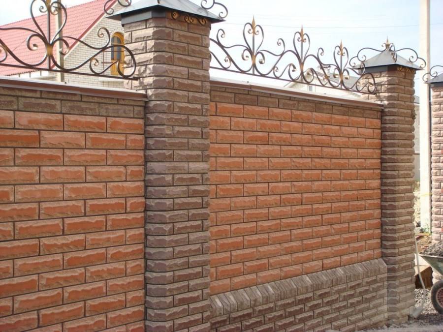 Для строительства забора применяют разные виды кирпича. И часто используют тот вид, который выбрали для строительства или облицовки дома: