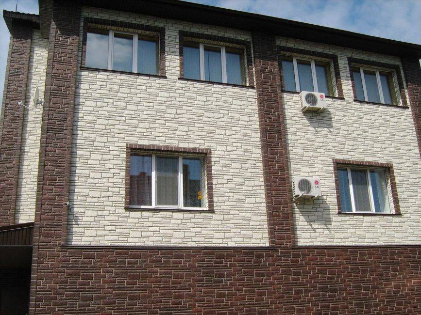 Она крепится к дому с помощью небольших металлических стяжек, обеспечивая небольшой зазор воздуха между первичной внешней стеной и декоративным фасадом.