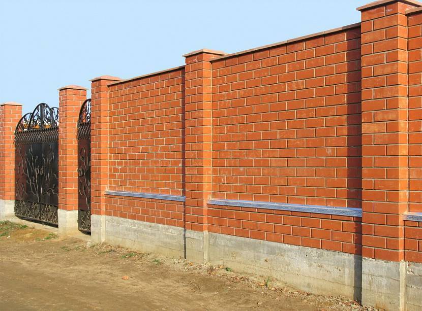 Для строительства забора применяют разные виды кирпича. И часто используют тот вид, который выбрали для строительства или облицовки дома: