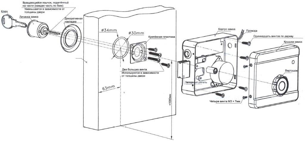 Мы рассмотрели общую схему установки накладного электромеханического замка. Но могут быть и другие варианты монтажа, например, на металлическую дверь. Своя схема и у врезных моделей.