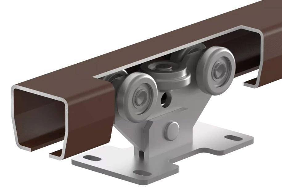При монтаже задействуют два данных элемента. Они располагаются на основе – площадке, которая крепится к закладной детали фундамента методом сварки. Сами каретки монтируют с помощью резьбового соединения. Сверху на них устанавливают направляющий блок вместе с полотном подвижной створки. Роликовые каретки представляют собой закрытую систему, которая нуждается в смазочных материалах.