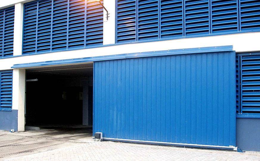 Первые два типа активно возводились в прошлом веке, они и сейчас работают на сохранившихся предприятиях. Полотно ворот двигалось по направляющим на роликах; подвесные ворота имели верхнюю направляющую, а рельсовые – нижнюю, подобную той, что устраивается для шкафа купе.